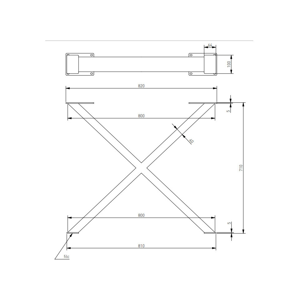 - Main profile dimensions: rectangular section of 80×40 mm. Height: approximately 710 mm. Width at base: approximately 820 mm. Weight per leg: about 10 kg. Load capacity per leg: up to 250 kg.