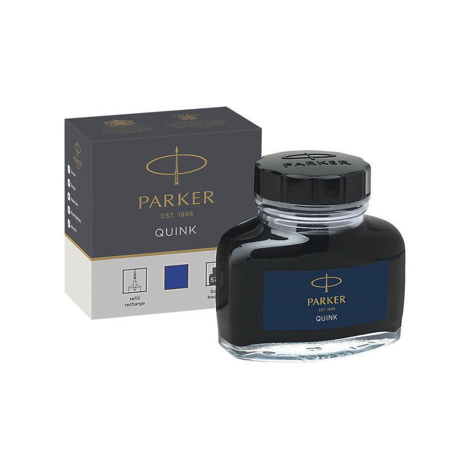 Parker Quink permanent blue ink is a 57 ml bottled ink designed for use with fountain pens. Ideal for everyday writing, it offers a consistent and reliable flow, delivering permanent blue lines that remain crisp over time.