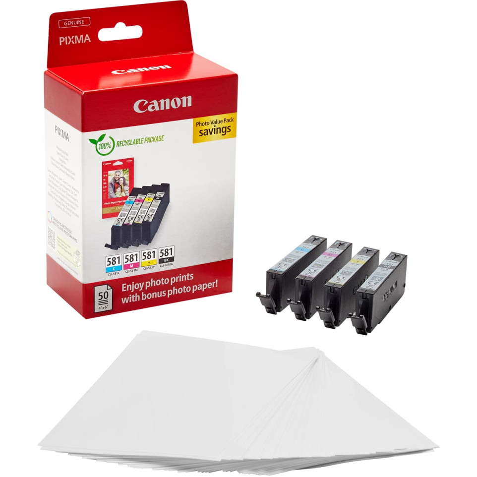 The Canon CLI-581 ink cartridge multipack is designed for use in compatible Canon inkjet printers, delivering high-quality color prints for documents and photos at home or in the office.