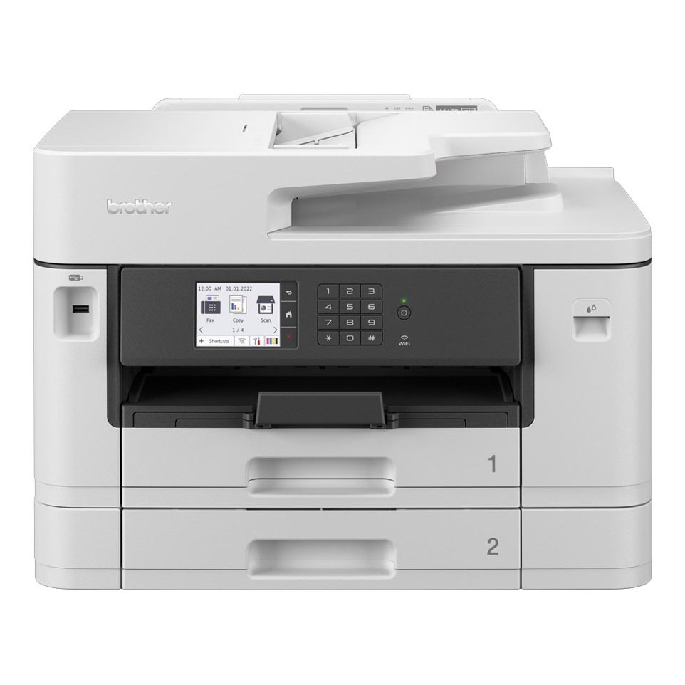 The Brother MFC-J5740DW is a professional A3 inkjet wireless all-in-one printer designed for demanding small offices and business workgroups. It offers fast automatic 2-sided A4 printing, along with two 250-sheet A3 paper trays and a 100-sheet A3 multi-purpose tray.