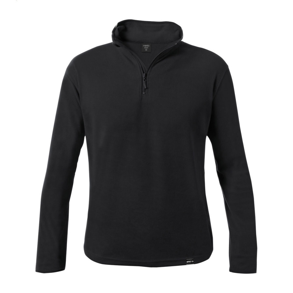 Mecox black RPET micro polar fleece jacket in size M features a short zipper and an anti-pilling finish. Designed for everyday use or corporate environments, it offers lightweight comfort and warmth in a classic silhouette.