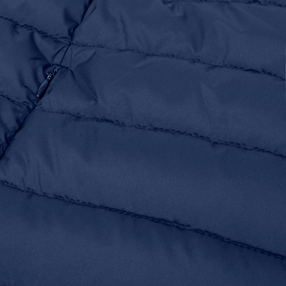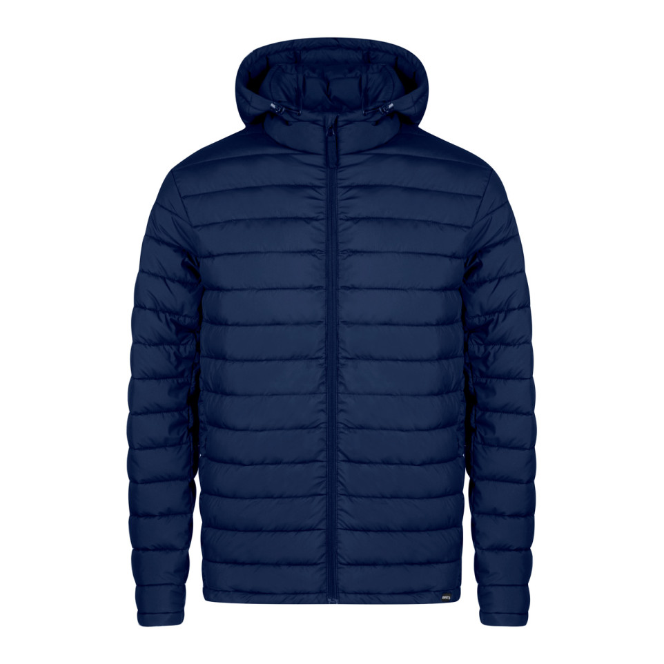 The Nonia dark blue RPET jacket in size XS is a wind and water resistant, padded jacket featuring a full-length zipper, zipped side pockets, and an adjustable hood. Ideal for daily wear or outdoor activities in varying weather conditions.