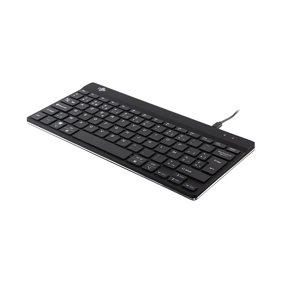 Connect the R-Go Compact Break keyboard to your computer using the provided cable. The keyboard’s integrated LED indicator uses color signals to prompt timely breaks, helping prevent strain and encouraging ergonomic practices throughout the workday. Its compact size makes it suitable for both office and on-the-go use.