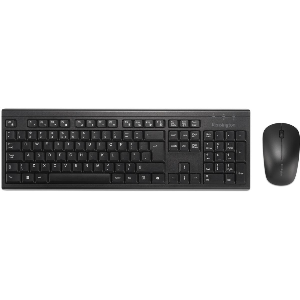 The Kensington EQ Deskset KM270 is a wireless, rechargeable keyboard and mouse set designed for comfortable, everyday use. Equipped with a full-size QWERTY keyboard and an ambidextrous mouse, it supports seamless connectivity via USB nano receiver or Bluetooth, making it suitable for home and office environments.