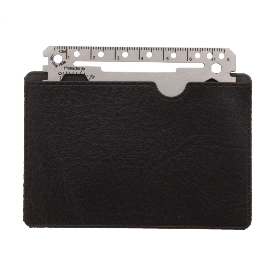 The Willys Silver Multi Tool is a compact, credit card-shaped stainless steel tool featuring 20 distinct functions, designed for everyday challenges. It fits easily in your wallet and comes in a sleek PU leather pouch, ideal for on-the-go utility.