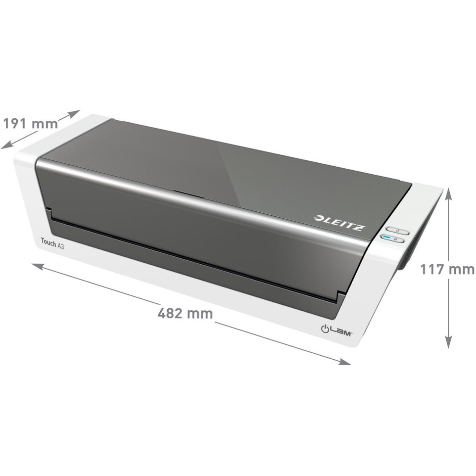 The Leitz iLAM Touch 2 is a high-speed laminator designed for busy office and school environments. It is ideal for laminating documents up to A3 size in various thicknesses, ensuring quick and efficient processing.