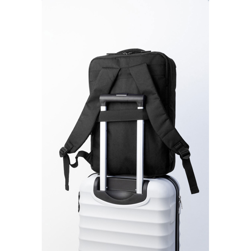 What is the trolley strap feature? The integrated trolley strap allows you to secure the backpack to rolling luggage handles, making airport and business travel more convenient.