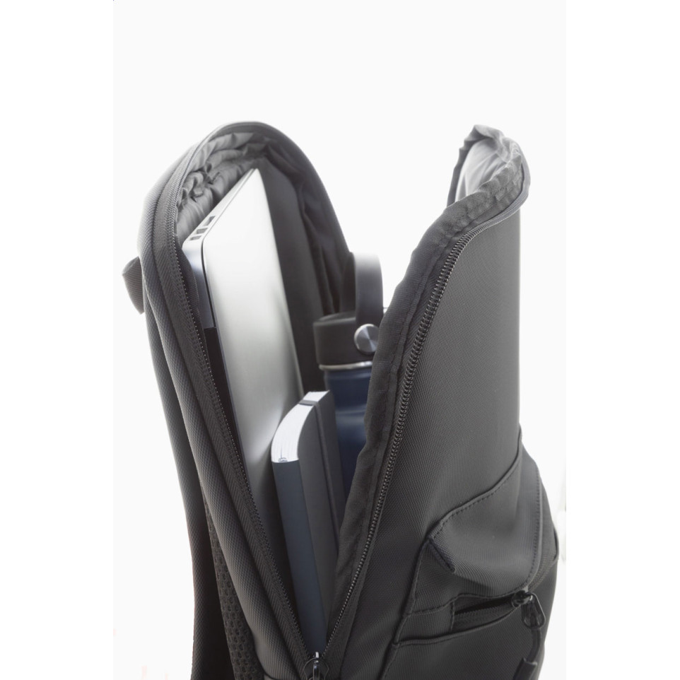 The Slippu black RPET laptop backpack is a slim, waterproof backpack designed to protect and transport laptops up to 15 inches. Ideal for daily commuting, business travel, or academic use, it features a dedicated zipped laptop compartment and a convenient front pocket.