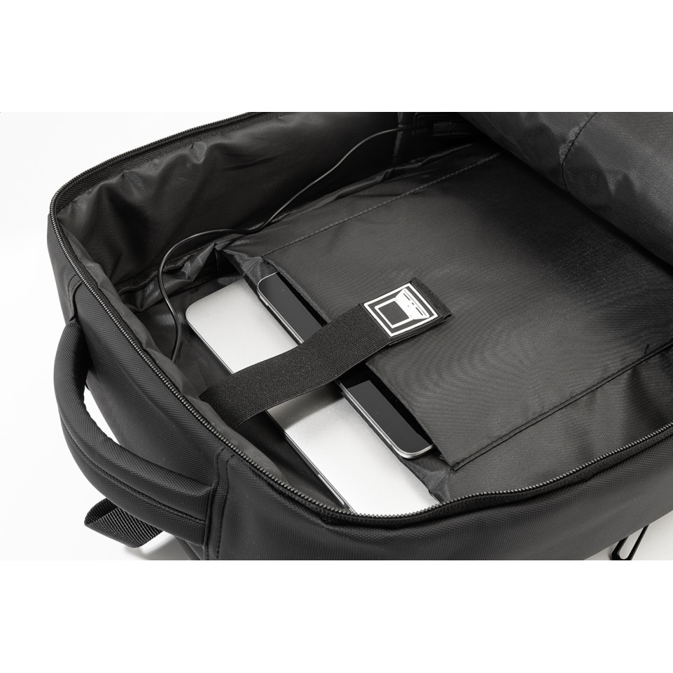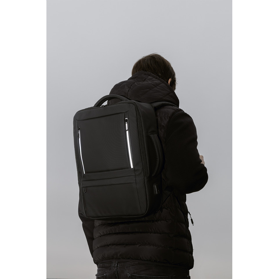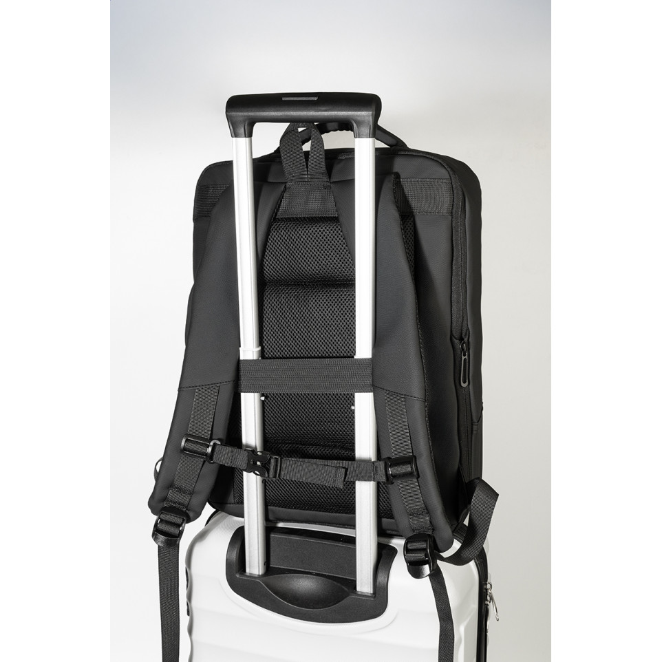 Molson Black RPET extendable backpack serves as a waterproof document bag ideal for professionals carrying laptops and tablets on commutes or business trips.