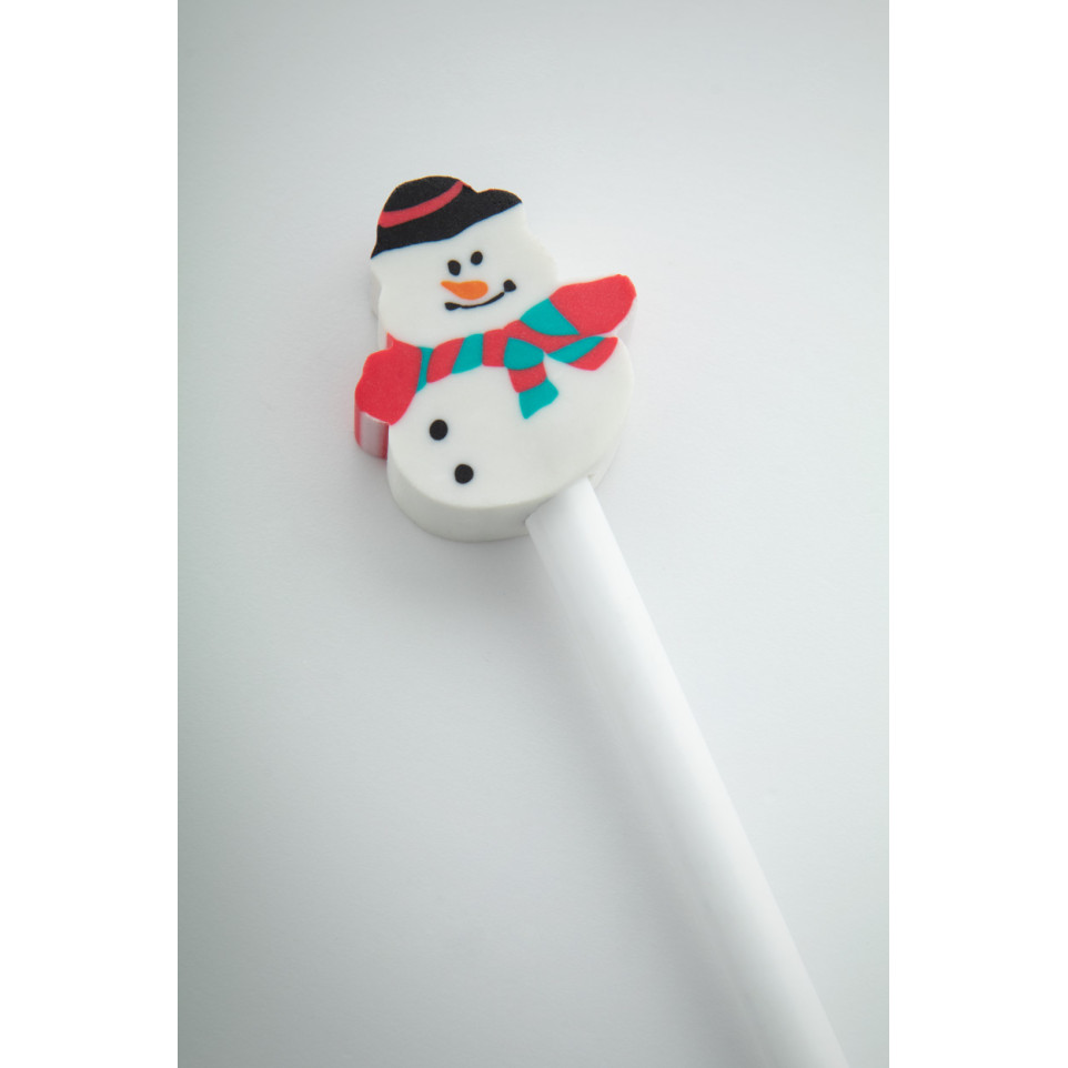The Ramsvika white Christmas pencil with snowman eraser is a sharpened wooden HB lead pencil designed for festive occasions, ideal for seasonal notes, gifting, or creative tasks during the holiday season.