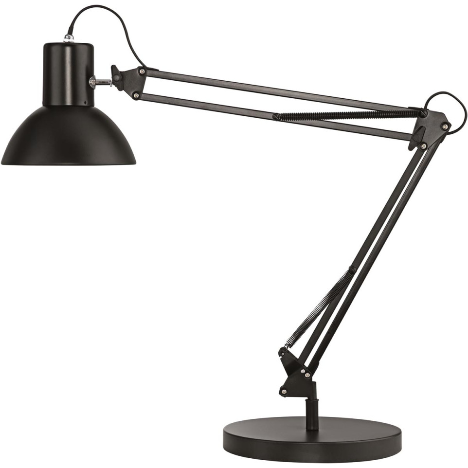 - The lamp features an epoxy-painted steel arm and head with recyclable aluminum components; color: black.