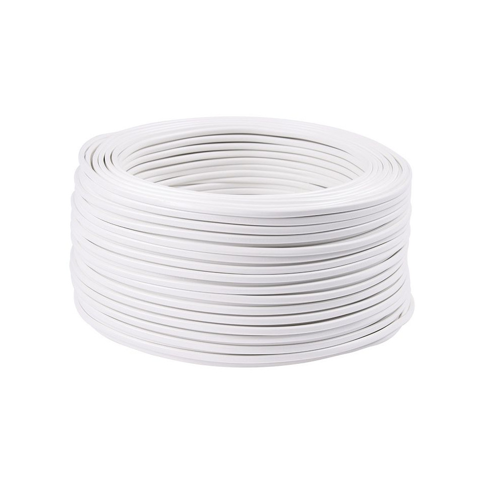 Flexible 2x0.75mm² white power cable designed for 220V applications, supplied on a 100-meter roll. Intended for use with LED transformers, distributors, and dimmers, suitable for both residential and professional electrical installations.
