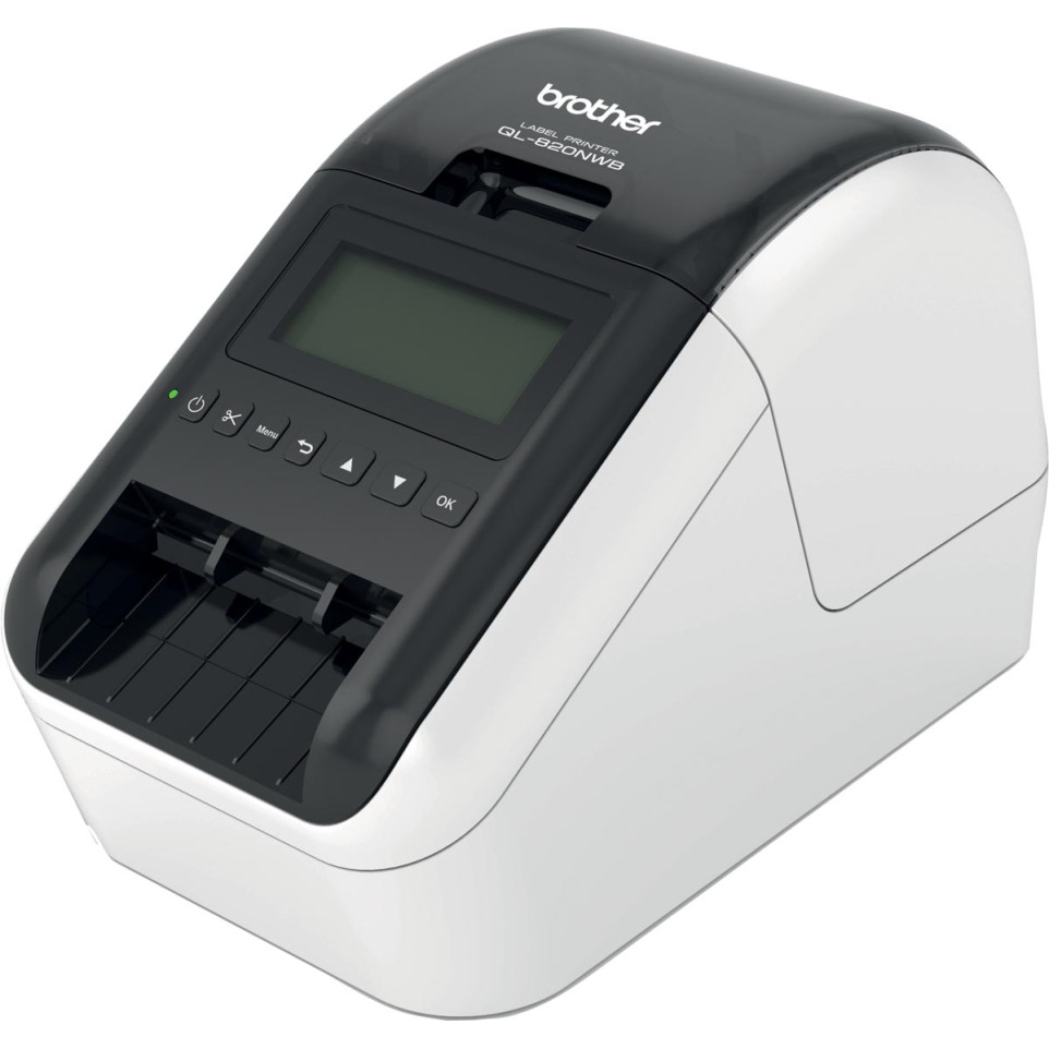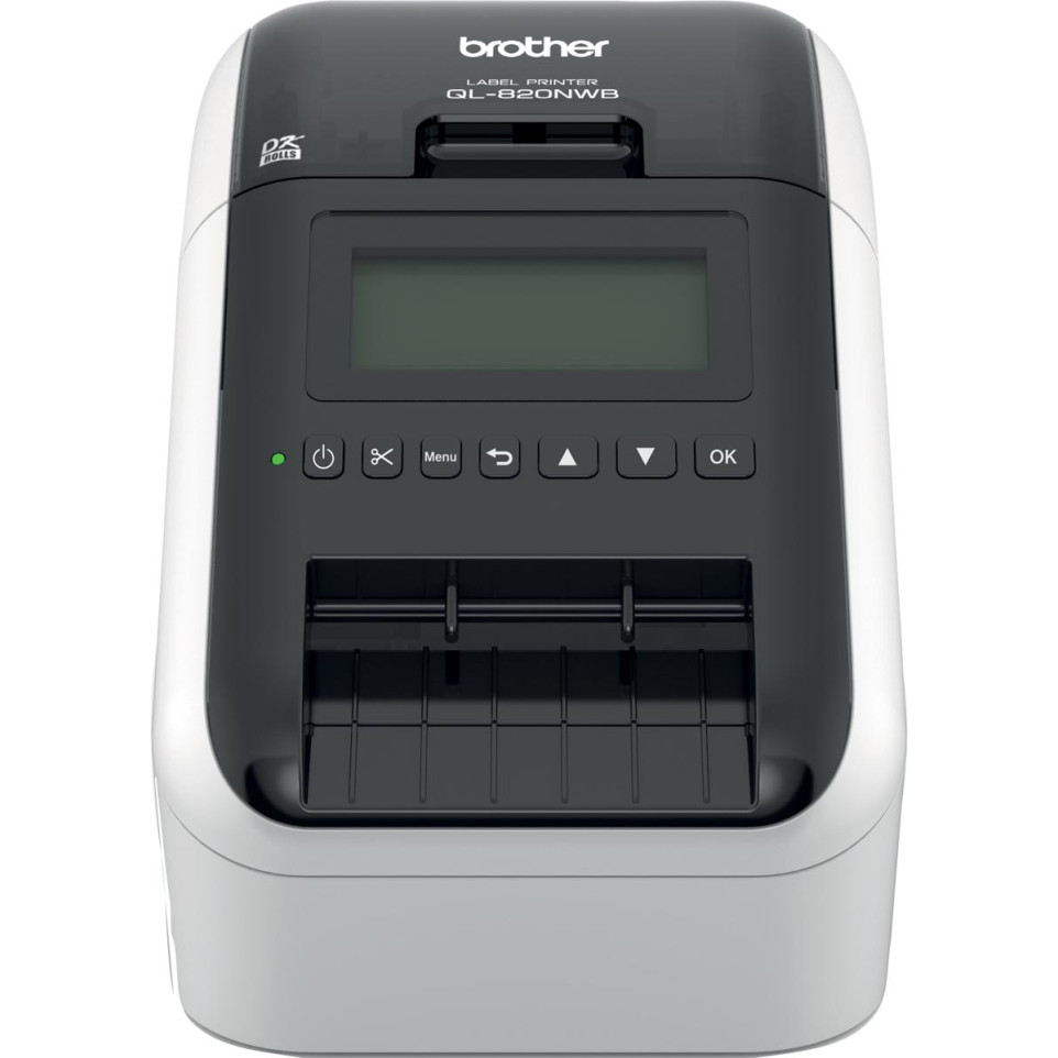 The Brother QL-820NWBC is a direct thermal label printer designed for creating custom labels in both black and red, ideal for professional environments. It connects via USB and supports wireless, Ethernet, and Bluetooth for flexible office integration and remote printing from PCs, Macs, or mobile devices.