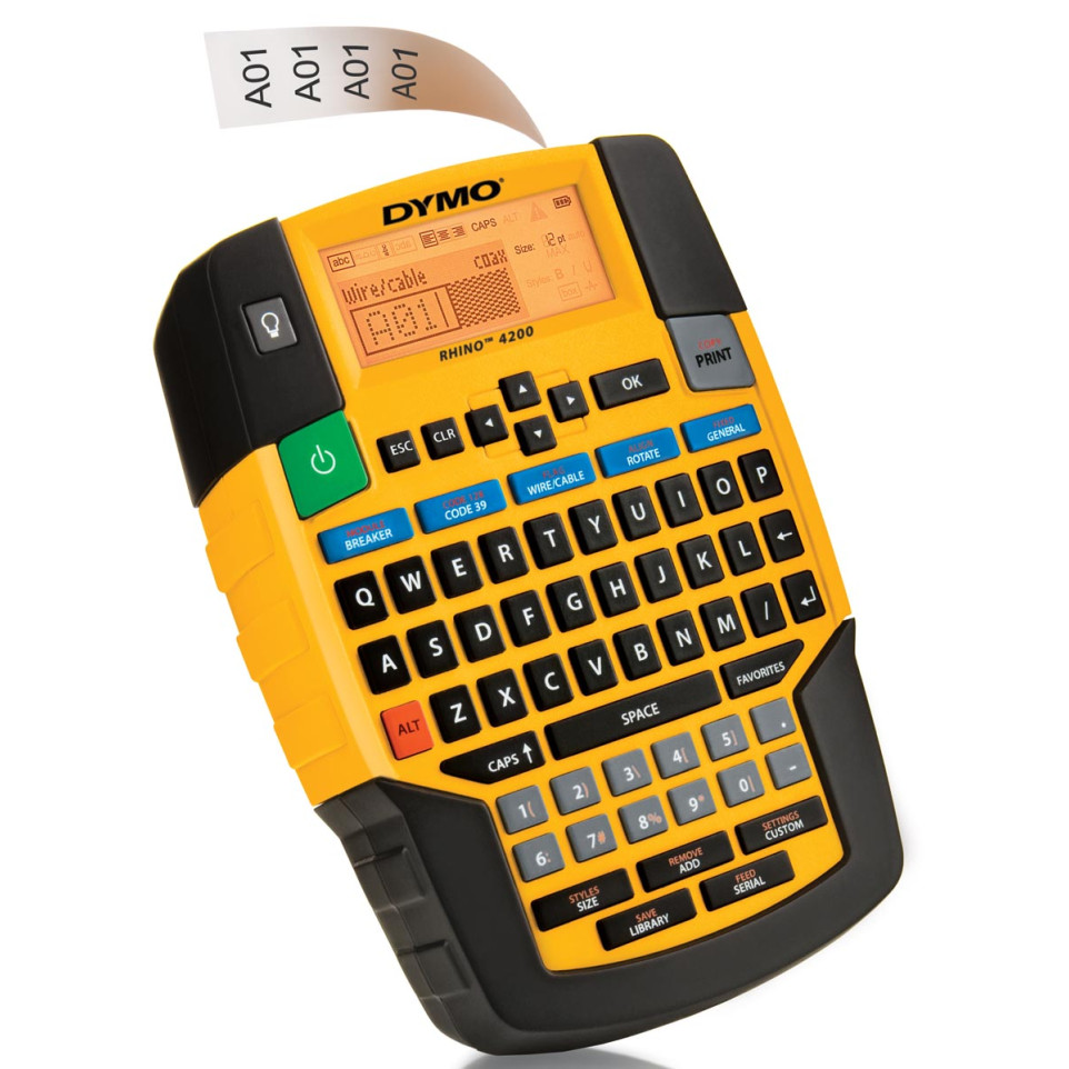 The Dymo Rhino 4200 labeling system is designed for fast, efficient creation of durable labels in industrial settings such as electrical installations, facilities management, and cable identification.