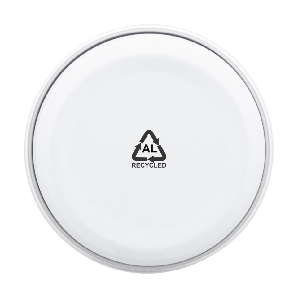 A vanilla-flavored lip balm housed in a sleek white recycled aluminum container. This eco-friendly lip care product offers SPF15 protection while maintaining ethical standards with no animal-derived ingredients.