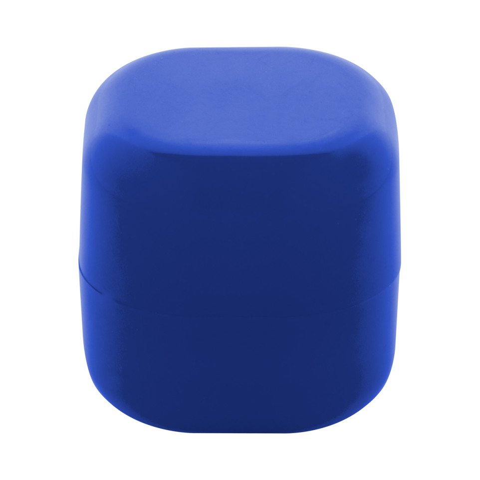 Cuboris blue lip balm offers vanilla-flavored care in a cube-shaped holder made from recycled ABS, providing comfortable lip protection with SPF15 for everyday use in any environment.