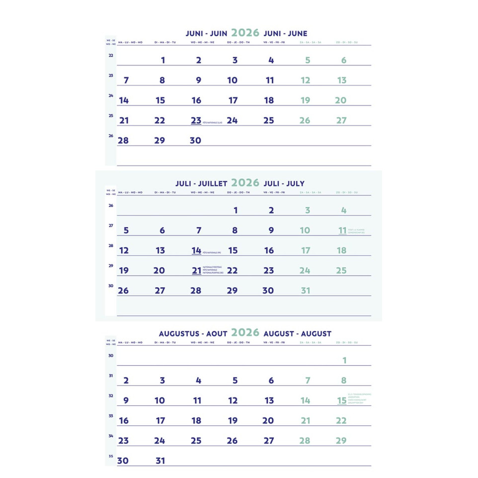The Brepols trimestrial calendar 2025 is designed for businesses and professionals to keep track of important dates and events throughout the year.