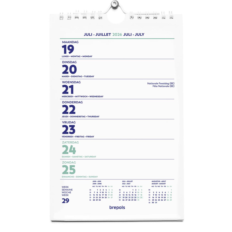 To use the Brepols Wire-O calendar, simply place it on your office wall and use the weekly layout to plan your tasks. The calendar is designed to be easy to read and use, making it a practical tool for daily organization.