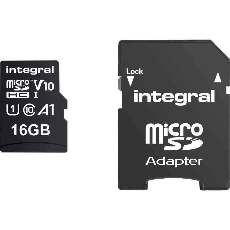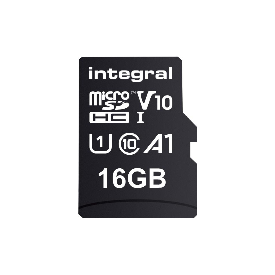 This integral carte mémoire microSDHC, 16 Go, is designed for use in various devices such as smartphones, tablets, and cameras, providing additional storage capacity for multimedia files, documents, and applications.