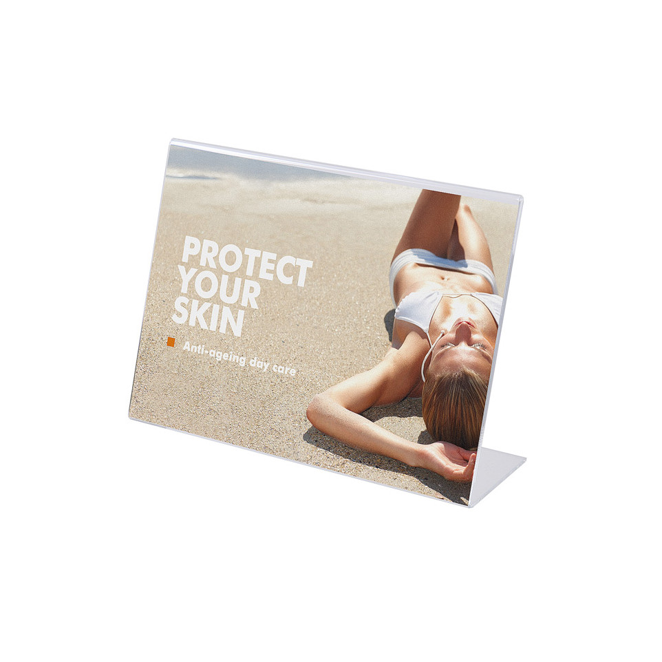 AdvantagesEasily insert your printed sheet into the holder via the side or top opening. Place it on any flat surface such as tabletops or countertops where it stands securely at an angle ensuring clear visibility of content by viewers.