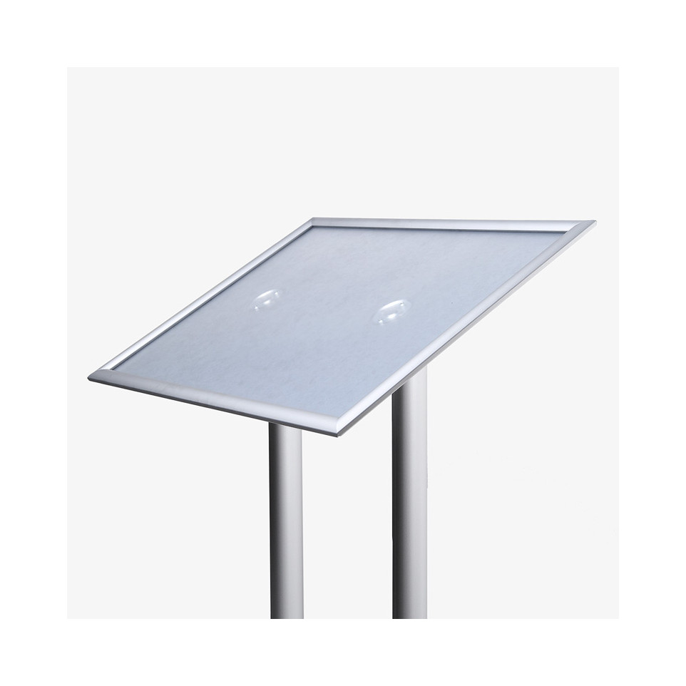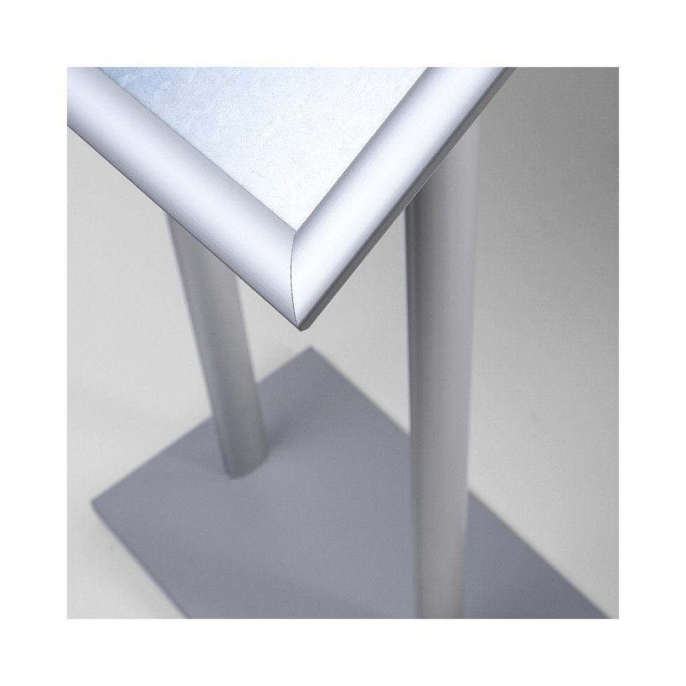 The Menu Board Design Standard 25 mm Mitred Corners A2 is ideal for showcasing menus or promotional content in restaurants, retail spaces, and museums. Its design ensures stable and stylish display.