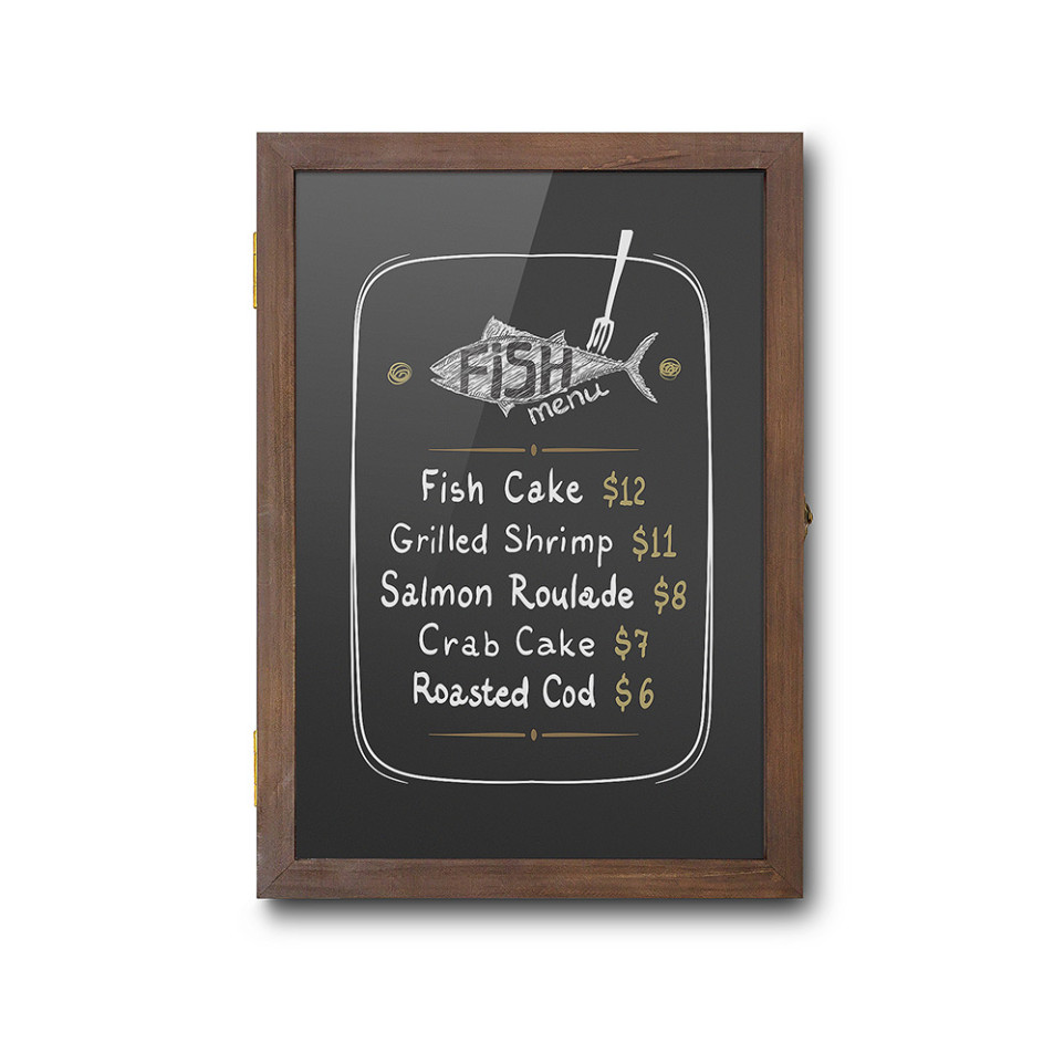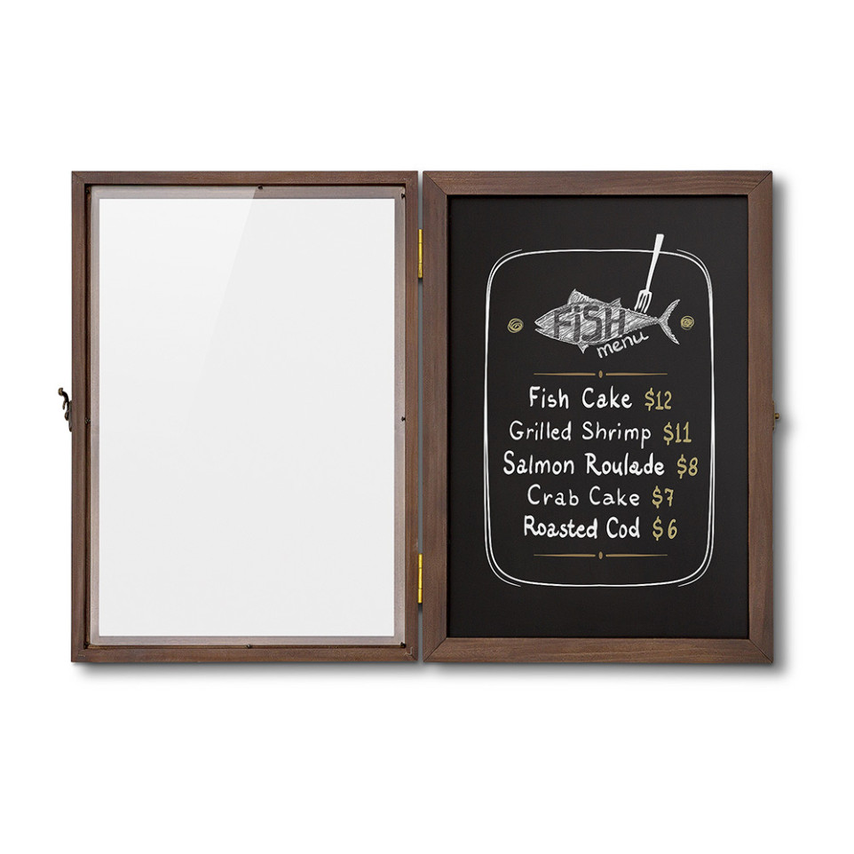 This wooden showcase is an elegant A3 menu holder, perfect for displaying messages or menus in hospitality venues, offices, and other professional settings. It provides a refined way to communicate with visitors.