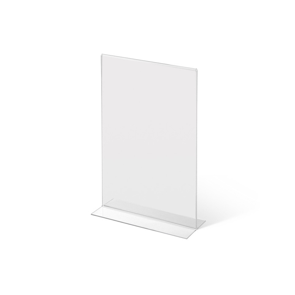Insert your A4 printed document into the top of the acrylic holder and place the stand on any flat surface such as a counter, table, or reception desk. The T-shaped base keeps the display upright and stable. Swap content as often as needed by simply sliding sheets in and out.