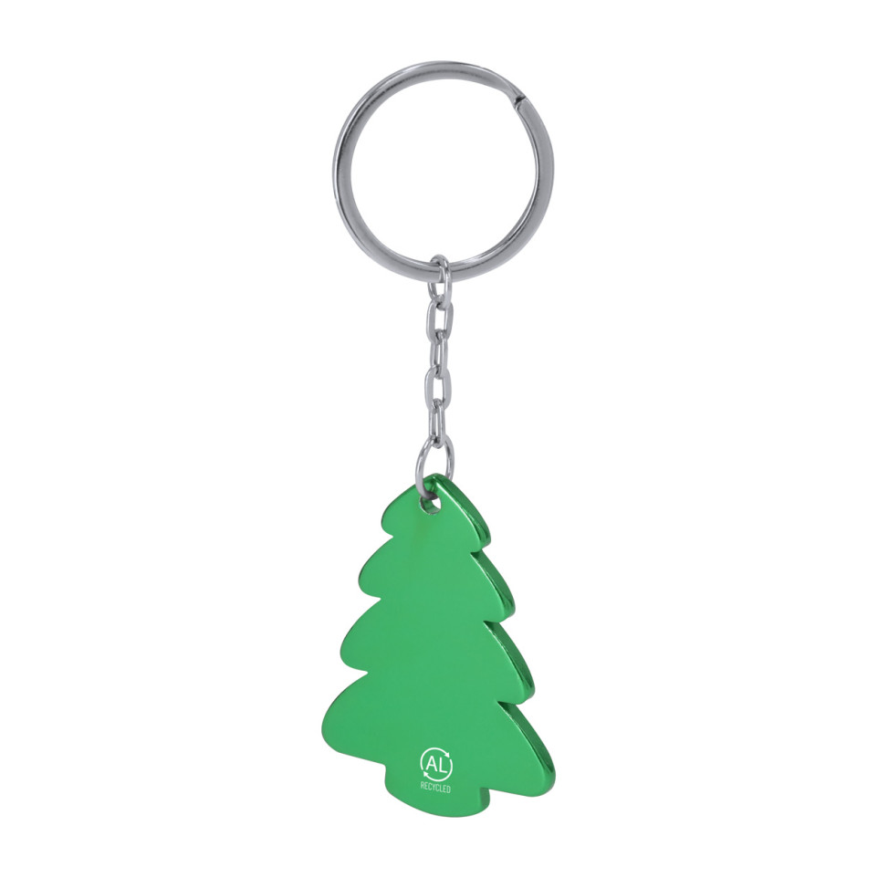 Festive and functional, the Jorex green Christmas keyring features a Christmas tree silhouette crafted from recycled aluminium, finished with a sturdy metal ring—ideal for keeping keys organized or adding seasonal flair to bags and accessories.