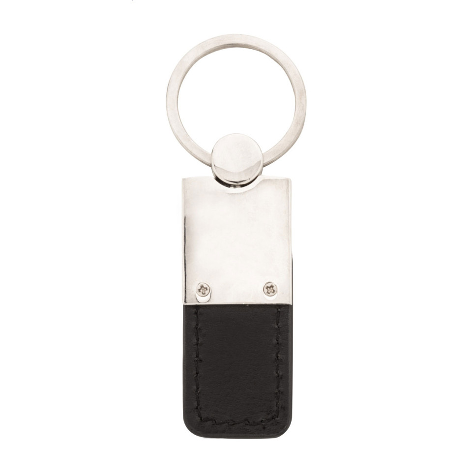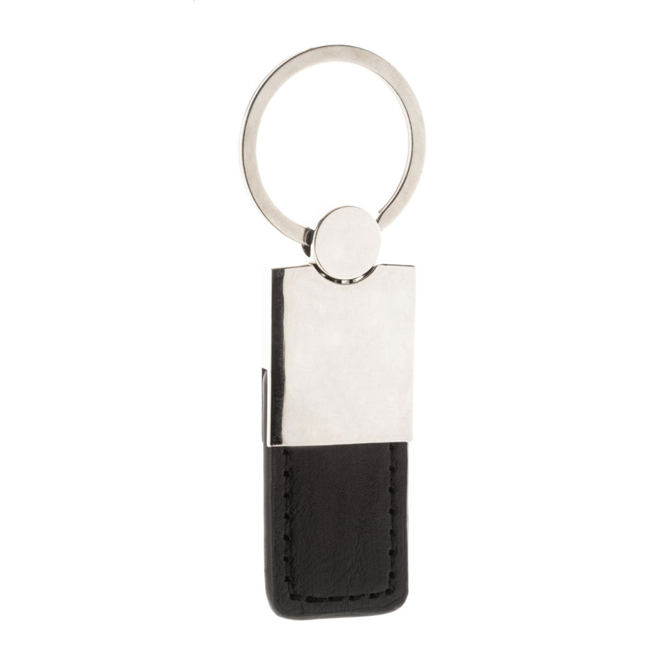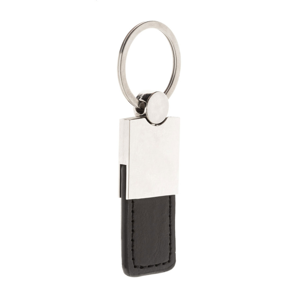 Sleek and sophisticated, the Rokke keyring combines silver metal with black PU leather for a professional look. Presented in a kraft paper box, it offers both style and practicality for everyday use.