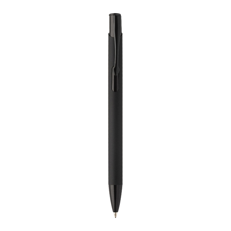 The Shinnel ballpoint pen is manufactured from recycled aluminium with rubberized surface and metallic finish details.