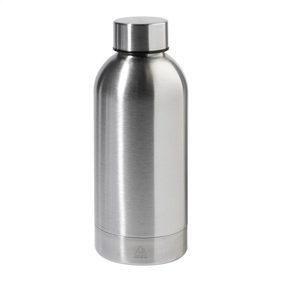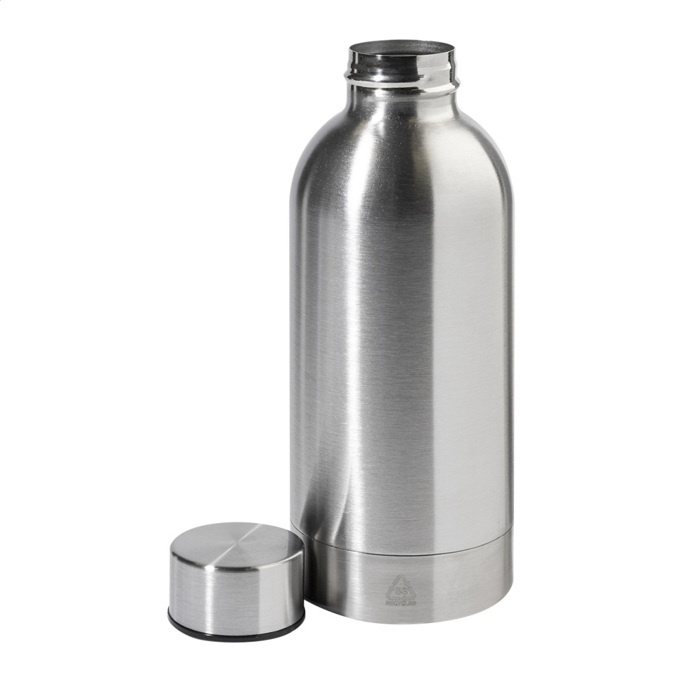 Pumono silver RSS bottle made from recycled stainless steel with a 500 ml capacity. Designed for active lifestyles, this durable bottle keeps beverages at desired temperatures while supporting sustainable consumption practices.