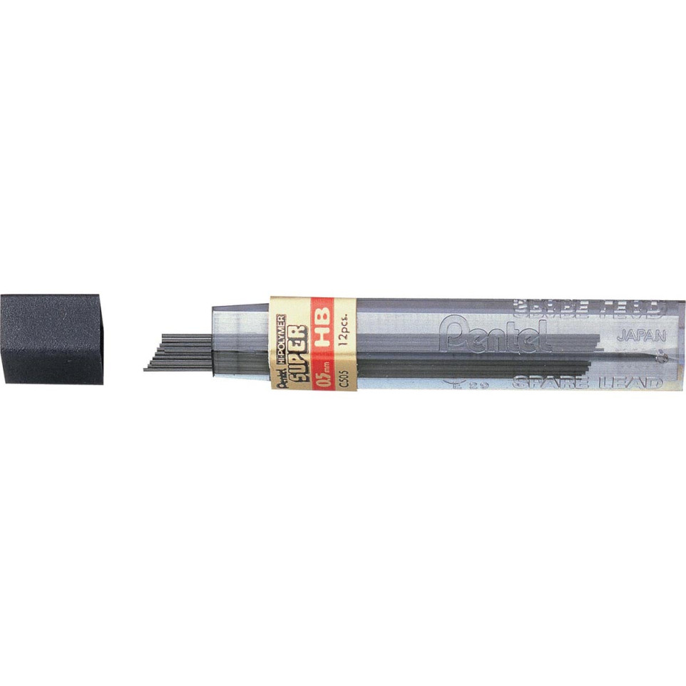 Pentel 0.5 mm HB leads come in a durable case containing 12 pieces, designed for precise writing and drawing with mechanical pencils. Ideal for everyday office work, technical drawing, and standardized test use.