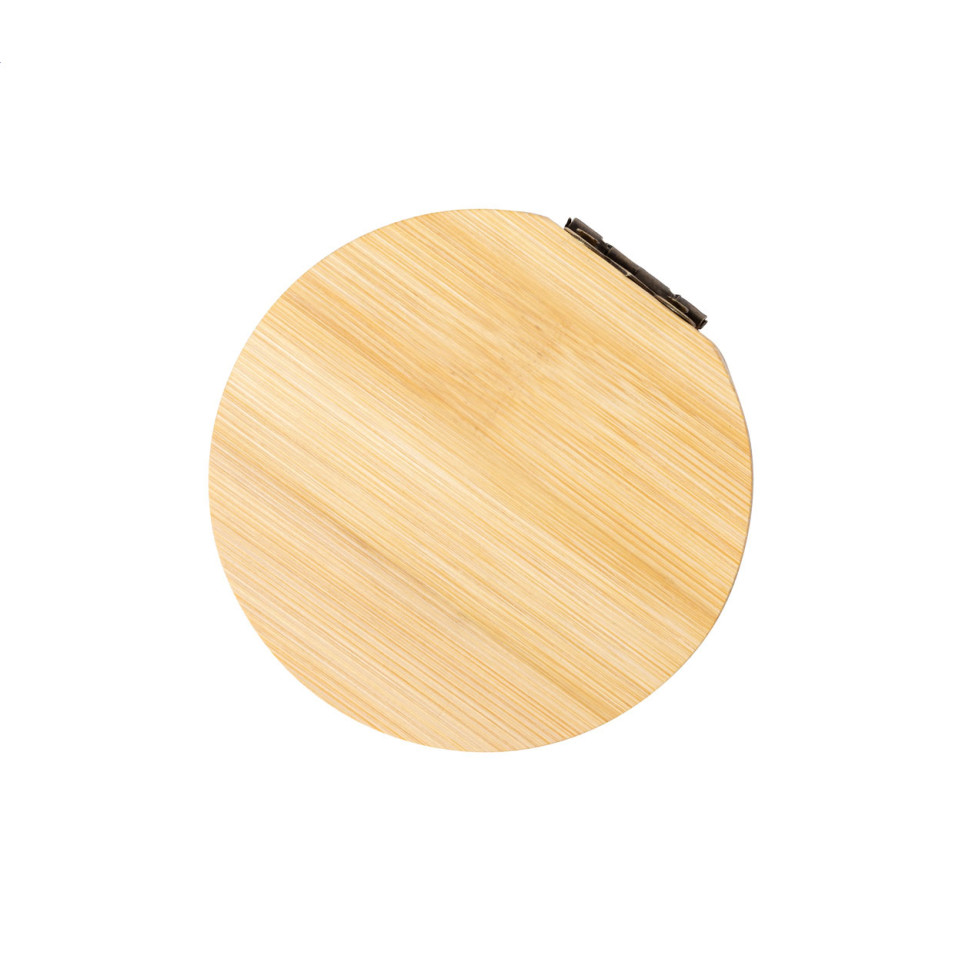 The Mirishi natural jewellery box is an elegant bamboo storage solution featuring a built-in mirror. Perfect for organizing small accessories while traveling or for everyday use at home.