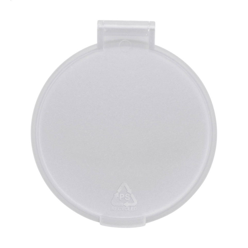 Compact and round, the Remake white RPS pocket mirror is housed in a translucent recycled PS case. Ideal for personal grooming on the go, it fits easily into handbags, desk drawers, or travel kits.