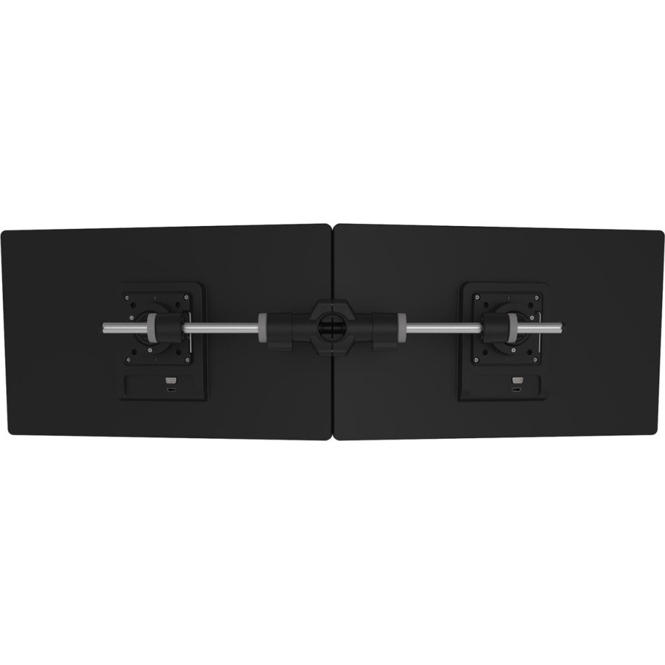 Attach the SmartBar Zepher/Caparo to your desk using the clamp or diameter support, then mount two compatible monitors onto the bar via VESA brackets. Adjust tilt, rotation, and pivot to achieve ergonomic viewing angles, maximizing comfort and productivity during extended computer use.