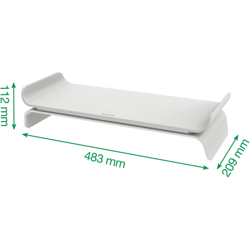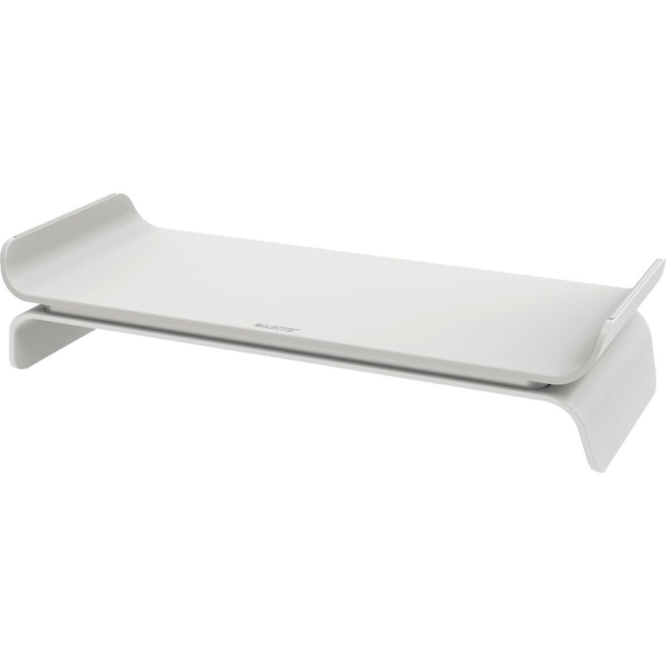 To use the Leitz Ergo screen support, simply place your monitor on the stand and adjust the height and tilt to your preferred position. The compact design ensures easy installation on most desks, and the sturdy construction provides stability for your monitor.