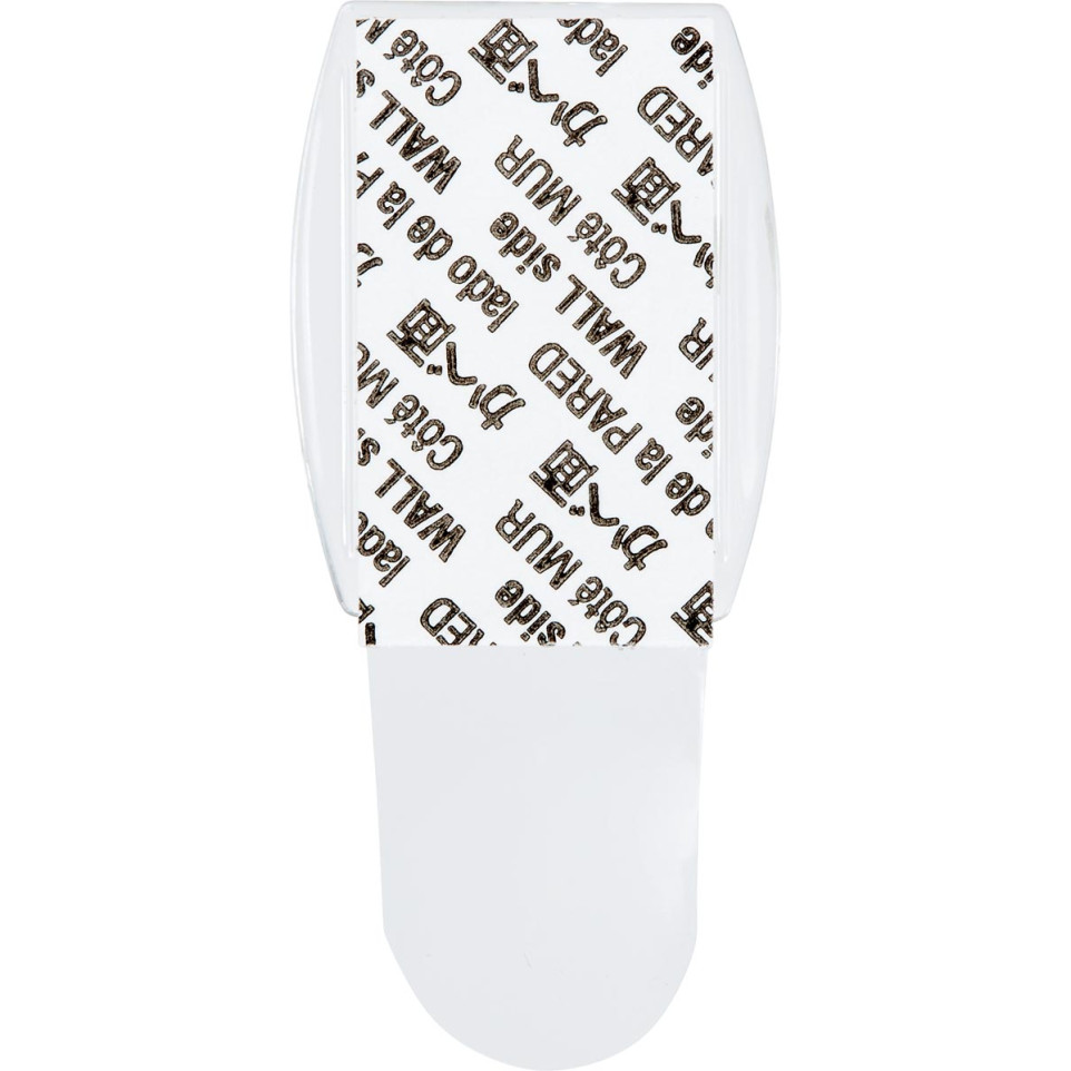 Peel the protective backing from the adhesive strip, press the strip onto the surface, then attach the hook. To remove, simply stretch the adhesive tab downward to release the hook cleanly. Reuse by applying a new mounting strip.