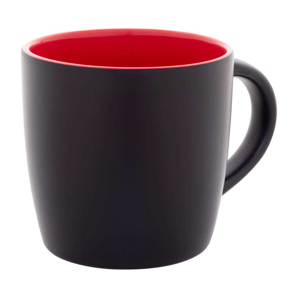 The Sculptus red black mug is a stylish 300 ml ceramic mug featuring a sleek black exterior with a vibrant red interior. Perfect for office use, promotional events, or as a thoughtful corporate gift that combines elegance with practicality.