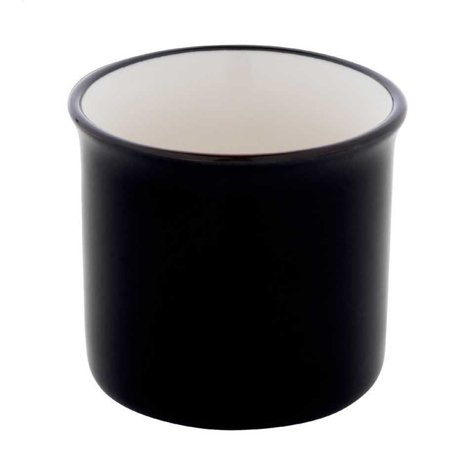 The Woodstock Mini black mini vintage mug is a compact 90 ml ceramic mug featuring a classic black rim, a white interior, and a colored exterior. Packaged in a kraft paper box, it’s ideal for espresso or short drinks at home, in the office, or in hospitality settings.