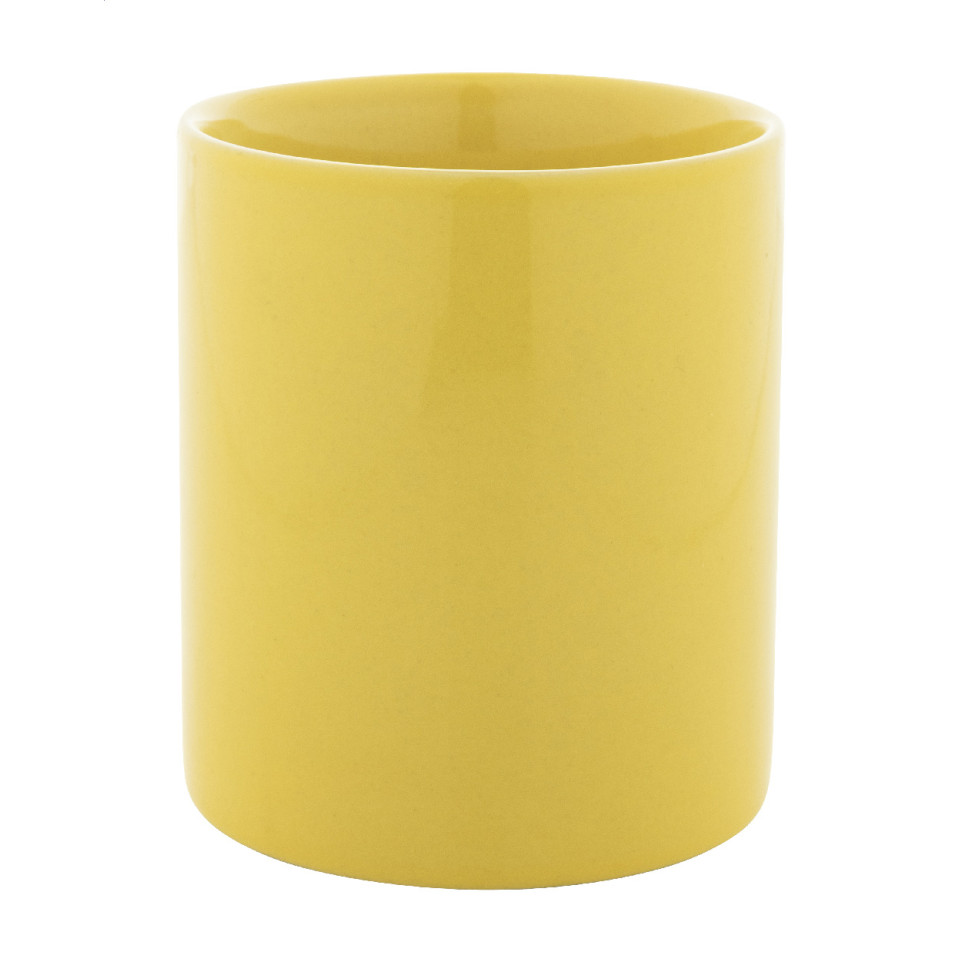 - Crafted from durable ceramic with a high-gloss yellow exterior.