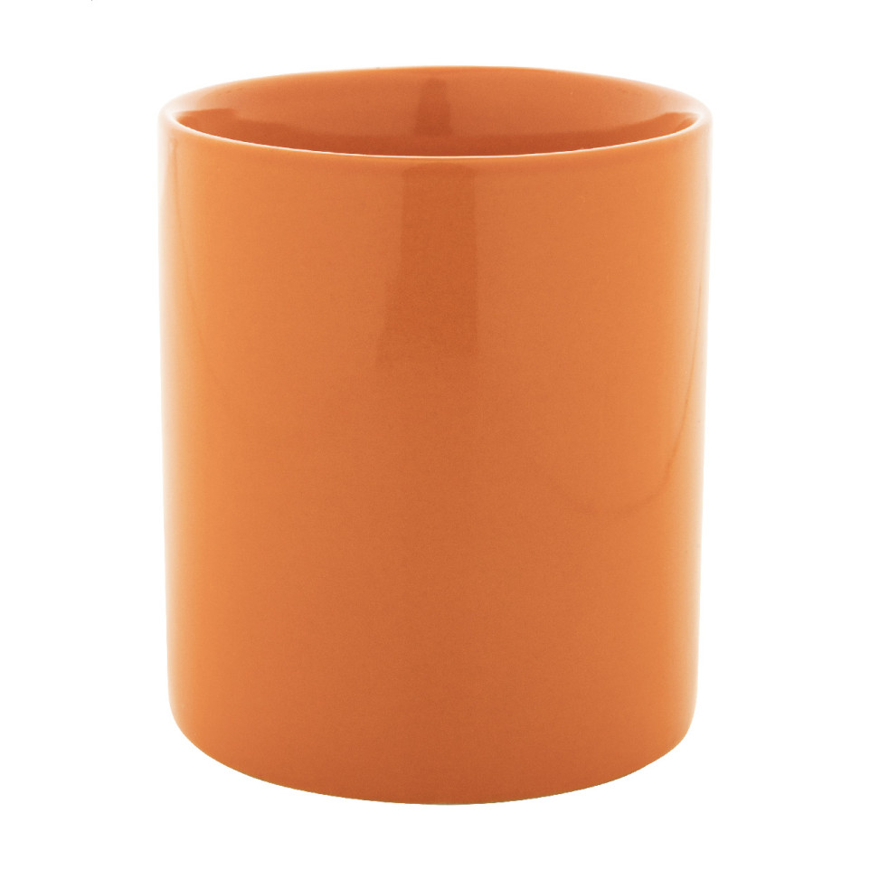 Classic orange-coloured ceramic mug with a glossy finish, 300 ml capacity, delivered in a protective kraft paper box. Ideal for daily coffee breaks at home or in the office.