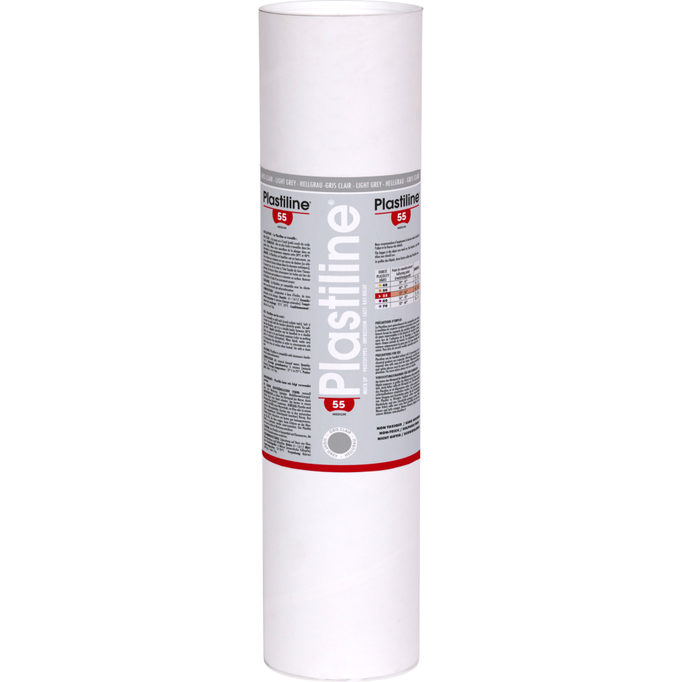 Plastiline 5kg, Hardness 55 Plastiline can be used for the research and creation of models in sculpture, the production of decorations and the manufacture of moulds, the restoration of works of art and decoration and, in industry, the taking impressions and making prototypes. Plastiline retains its volume and never air dries. You can therefore resume your model as many times as necessary. Convenient for people wishing to start or improve in modelling! It is also ready to use for a clean, quick and easy application. High precision (1/10th of a millimetre). Standard hardness 55 can be used for preliminary shaping or form filling work. The increase in hardness allows work of meticulousness and expression of detail. Several Plastiline hardness's can be used on the same model. Use: Soften with the hands, with a heat gun or with a hair dryer to work it more easily. Liquid, in a bain-marie at a temperature between 40 and 50 , respecting the melting point and stirring it well to mix the oils it contains. This operation can be done a maximum of 5 times without altering its qualities. Just put it in the fridge to harden it. Delivery in a tube with interior covered with parchment paper. Hermetically protected by 2 polypropylene end caps, the Plastiline is easy to store. It remains clean and retains all its qualities. Can be painted with acrylic paints or covered with a layer of shellac previously diluted in alcohol..