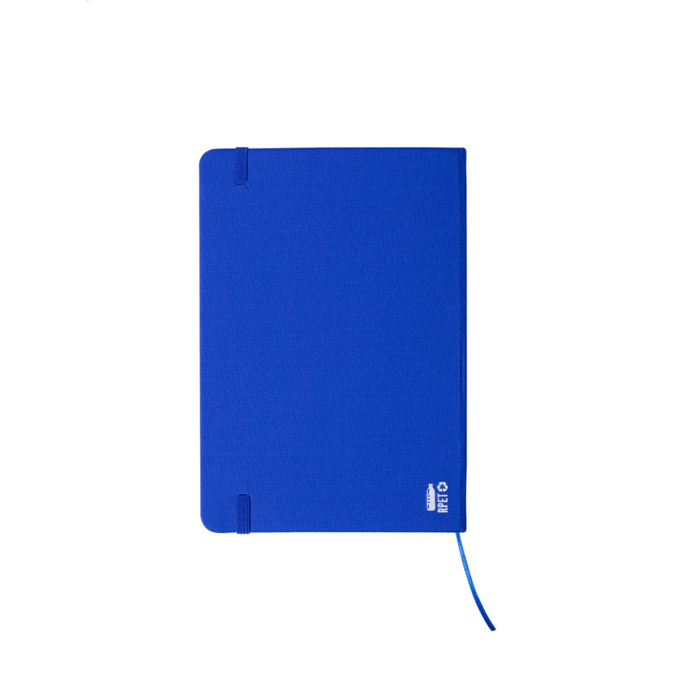 Are there other color options besides blue? Yes, the Baccata RPET notebook is available in several colors including black, white, red, blue, and green to match your brand identity.