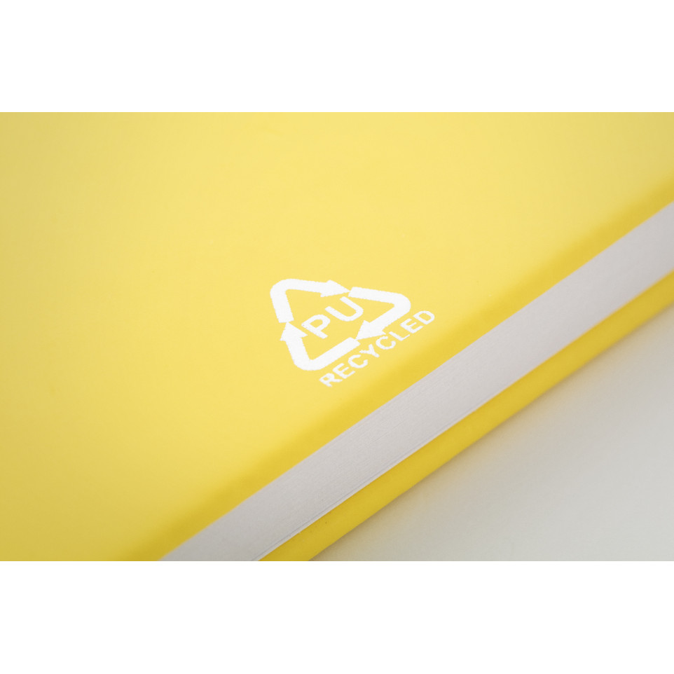 The Repuk Line A5 yellow RPU notebook is a versatile, eco-friendly notebook featuring a recycled PU leather cover and 100 lined sheets of recycled paper, ideal for meetings, note-taking, or daily organization in any professional setting.
