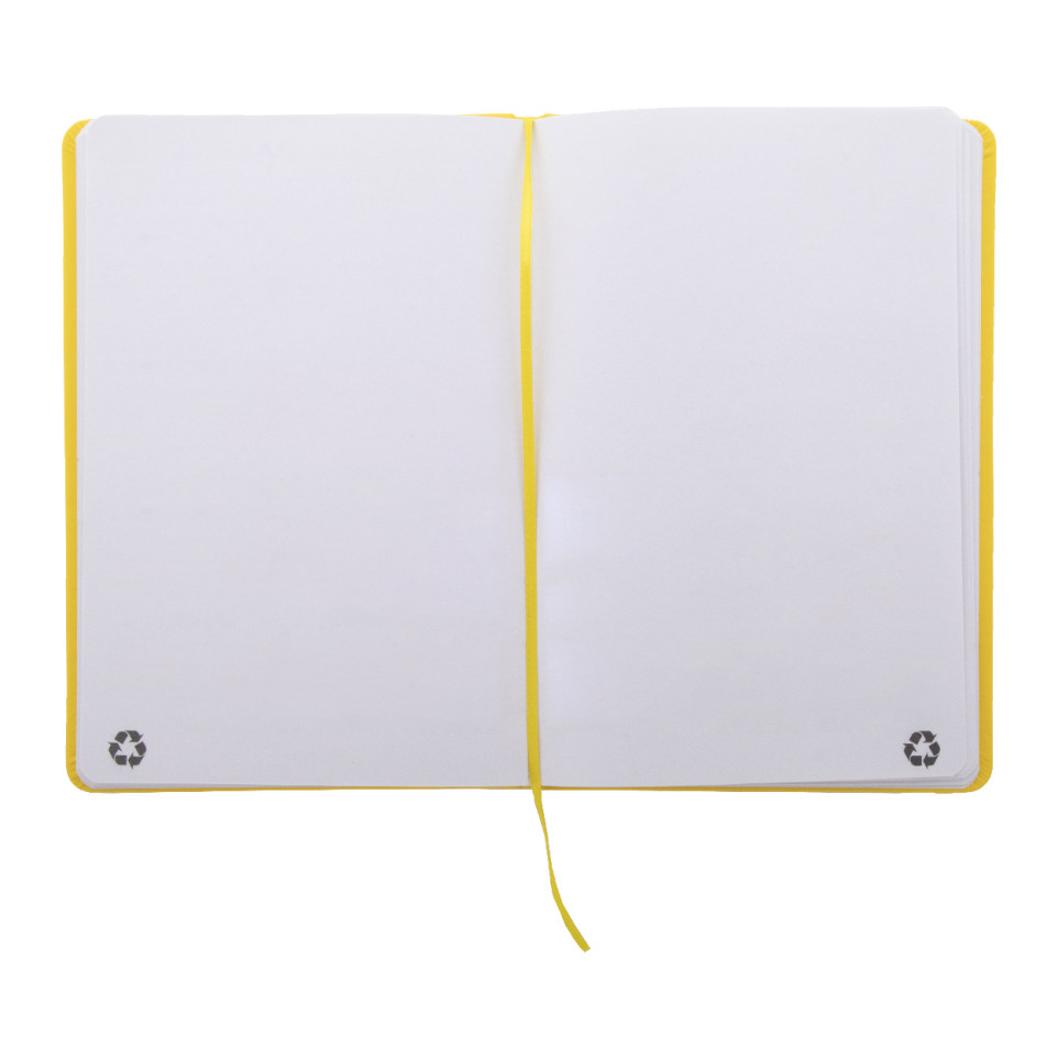 The cover is made from recycled PU leather, and the sheets are recycled paper.