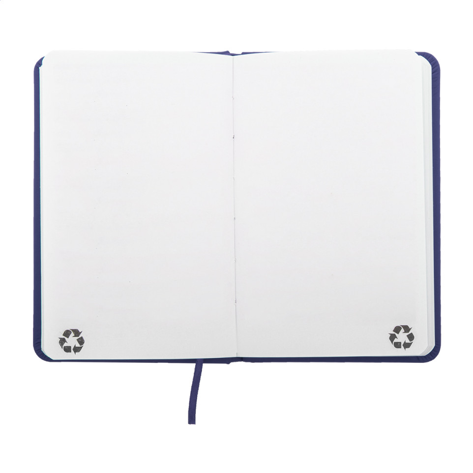 Compact and practical, the Repuk Blank A6 dark blue RPU notebook features 100 blank sheets of recycled paper, a recycled PU leather cover, and includes a matching color bookmark and elastic closure. Ideal for note-taking on the go or daily organization.