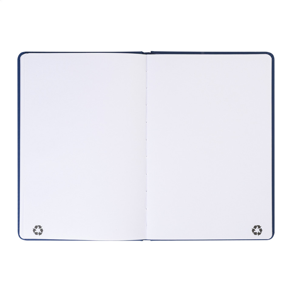 Repuk Blank A5 blue RPU notebook features a recycled PU leather cover with 100 blank sheets of recycled paper, a matching color bookmark, and rubber band. Ideal for note-taking, sketching, or daily planning in professional or personal settings.[28 words]
