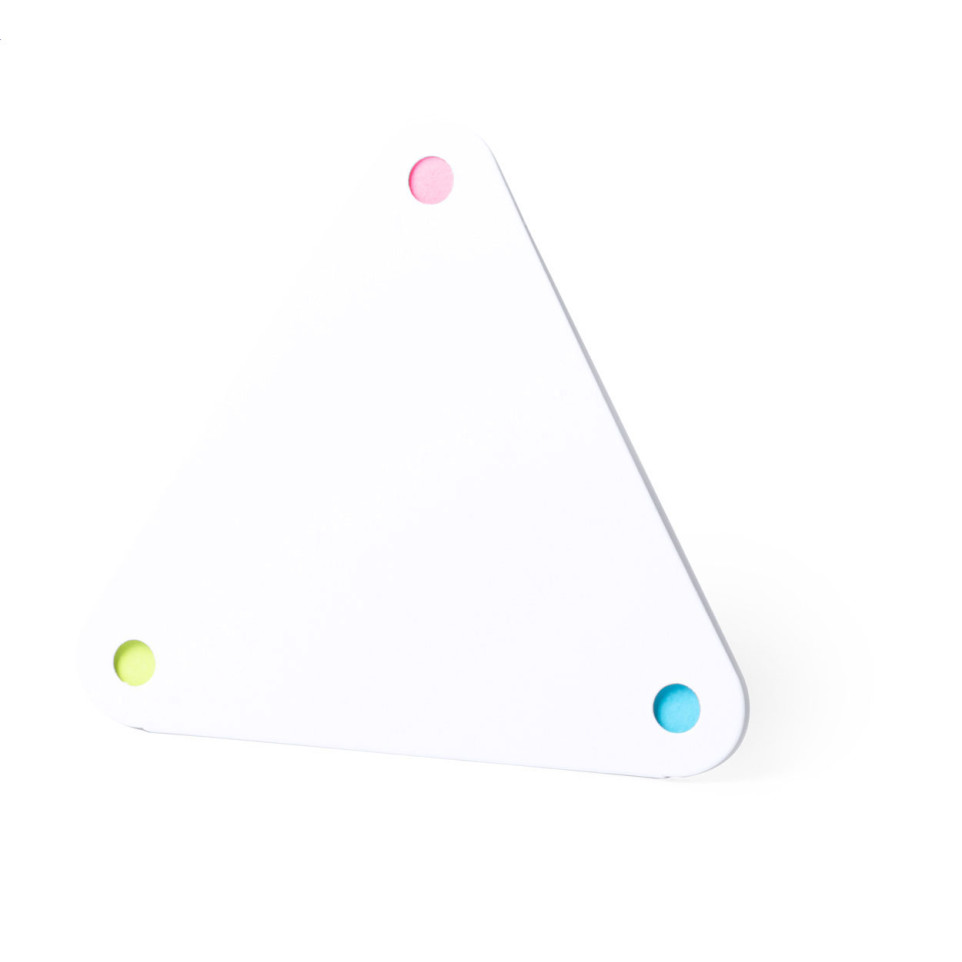 Trinot white sticky notepad is a triangle-shaped, recycled cardboard notepad featuring adhesive notes in two distinct sizes—20 hexagonal and 60 triangular sticky notes for versatile note-taking and message display.