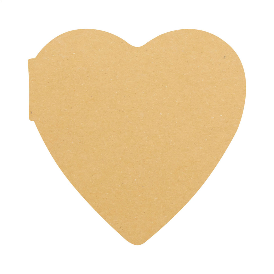 Custom heart-shaped sticky notepad with recycled kraft paper cover and 50 adhesive sheets made from recycled paper. Ideal for everyday annotations in eco-conscious workspaces, schools, or promotional settings.