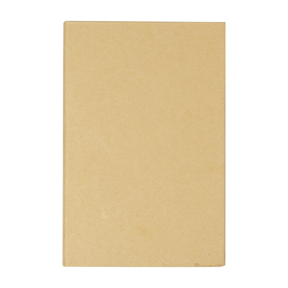 Recycled paper sticky notepad featuring 100 yellow notes and 500 page markers in 5 colors, with a 4-year calendar on the inside of the lid. Ideal for office organization and quick reference.